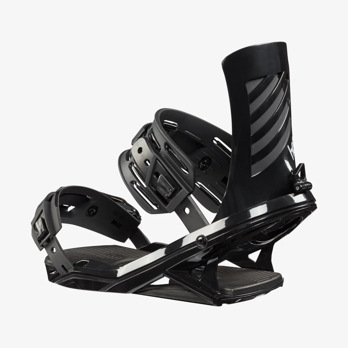 The FX ONE in black is a modern-shaped, affordable all-mountain snowboard binding that can be mounted on any insert pattern: 3x3, 4x4, and channel.